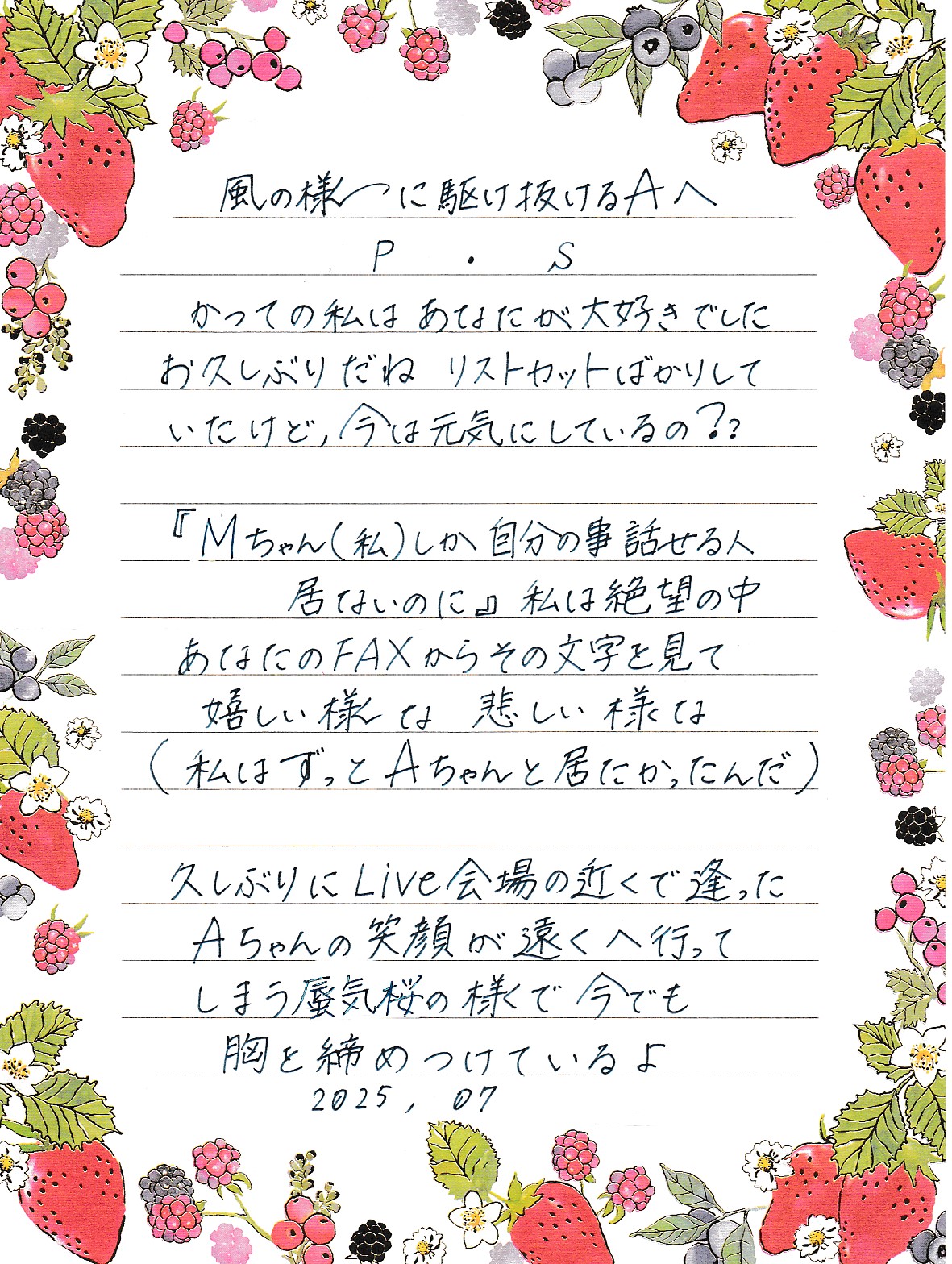 Aちゃんの笑顔が遠くへ行ってしまう蜃気楼の様で今でも